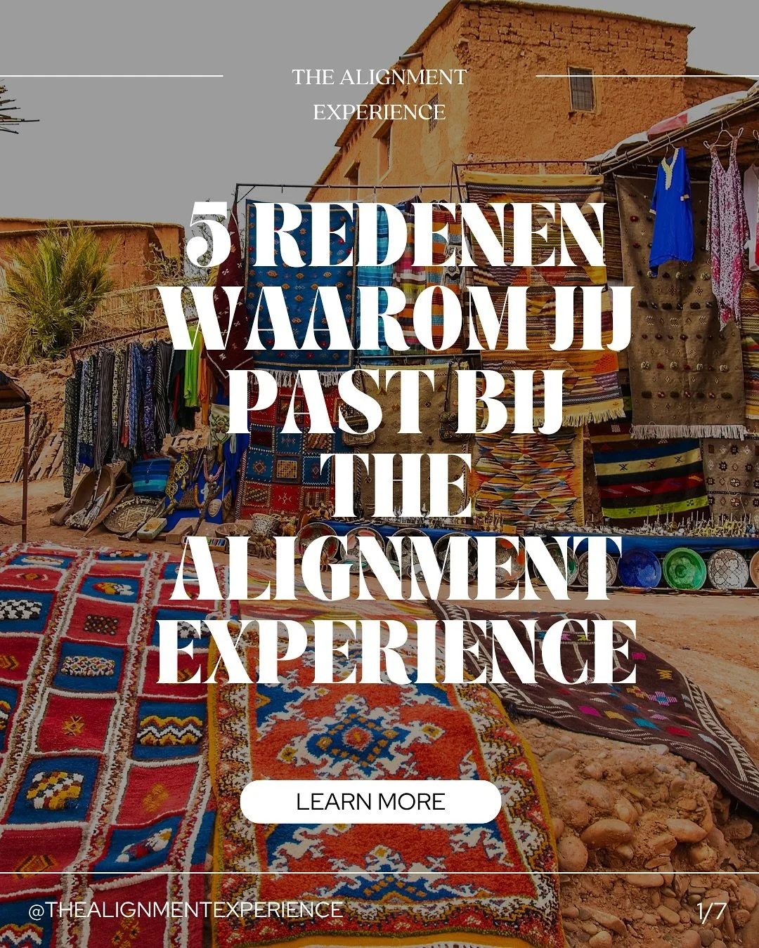 The Alignment Experience is een exclusieve 7-daagse business & soul retreat voor vrouwen die willen vertragen, verdiepen én versnellen. In de magische omgeving van Marokko nemen wij je mee op een transformerende reis waarin je weer volledig in verbinding komt met jezelf én jouw purpose – zowel zakelijk als persoonlijk.